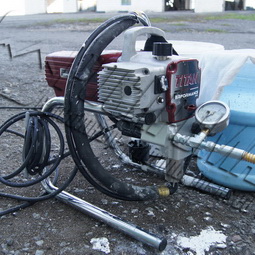 Безпоршневой аппарат высокого давления Titan Wagner, используемый Роспромальп для антигрибковой обработки фасадов.