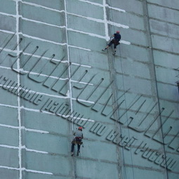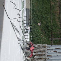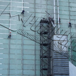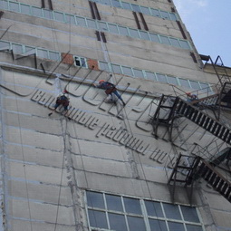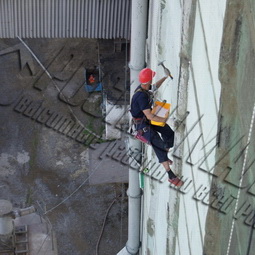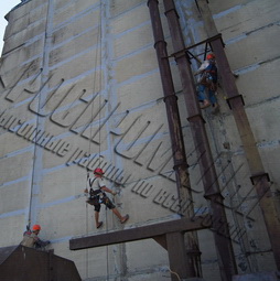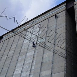 Антигрибковая обработка фасадов элеватора биозащитным составом высшего класса биостойкости.
