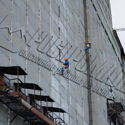Безпоршневой аппарат высокого давления Titan Wagner, используемый Роспромальп для антигрибковой обработки фасадов.